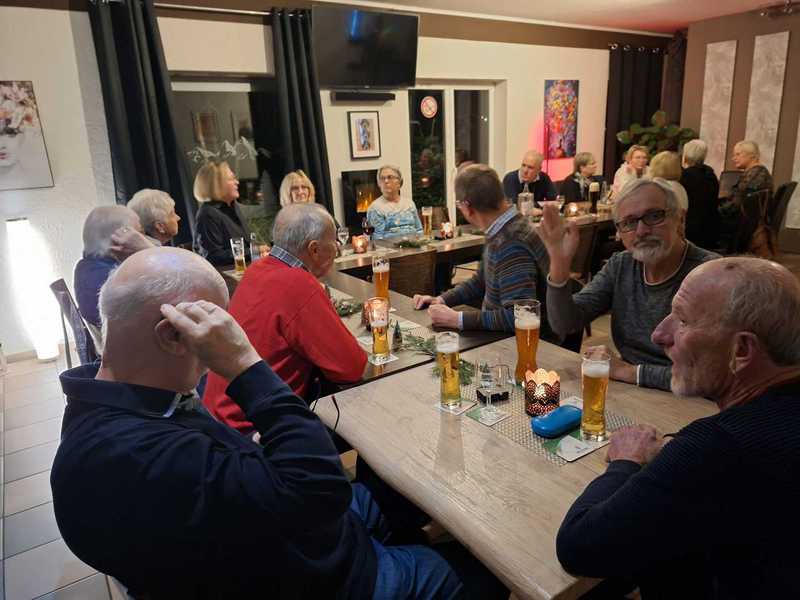Ein besonderes Highlight war das opulente Buffet: Alle Gäste hatten etwas dazu beigetragen, sodass eine vielfältige und reichhaltige Auswahl entstand. Nach dem gemeinsamen Essen sorgte zunächst eine Runde Darts für Bewegung und gute Stimmung. Anschließend folgte eine klassische Knobelrunde, bei der die bereitgestellten Preise vergeben wurden.